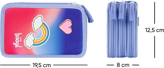 Enjoy a perfect overview across three tiers — this BAAGL school pencil case holds everything from colored pencils and markers to rulers and an eraser. The durable textile material with a rainbow motif and a heart delights at first glance, while quality zippers and a reinforced spine ensure easy opening and everyday durability.