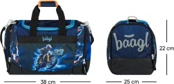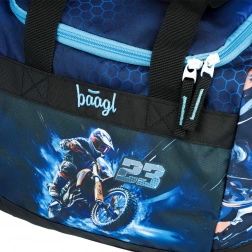 The BAAGL Motorcycle children's sports bag combines uncompromising practicality with an attractive look. Thanks to the spacious main compartment with a wide lid, kids can easily pack clothes, a bottle, and sports gear. The separate shoe pocket keeps everything else clean and organized, while the small pocket for valuables is perfect for keys or money.