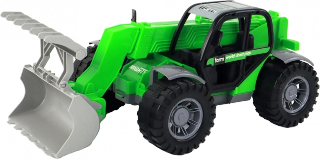 Discover a versatile kids' tractor in an attractive green color that faithfully imitates agricultural machinery. With its extendable arm and large, stable wheels, it can handle the “terrain” of a child's room or the garden. The transparent cab adds realism, helping kids easily step into the driver’s role.