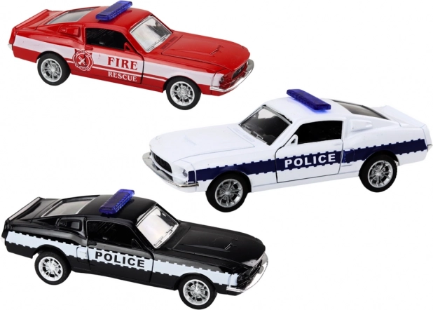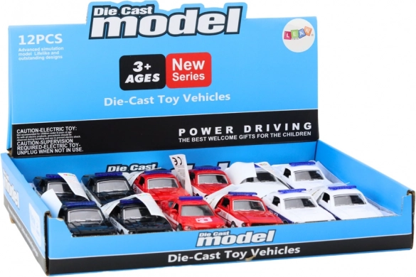 Thanks to the metal body, the models are sturdy and resistant to impacts. The product meets CE and EN 71 safety standards, making it suitable for children aged 3 and up. The package contains a police or fire vehicle (colors are shipped randomly or on request: red, white, black).