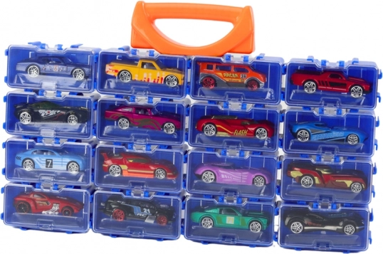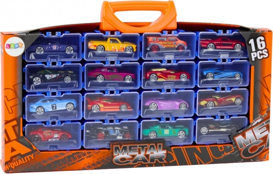 Discover on-the-go fun with a set of metal toy cars in a practical carry case. The set includes 16 colorful cars with unique styles that spark imagination and a passion for collecting. A sturdy case with handle and removable dividers keep everything neatly organized and ready for instant play. A safe choice for kids aged 3+, with CE certification and compliance with EN71.