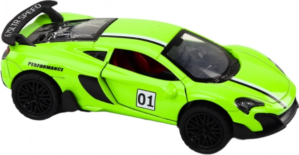 This sport car in green color, in 1:32 scale, is an ideal choice for car enthusiasts who appreciate an exceptional design and dynamic. Its sporty silhouette faithfully mimics the lines of actual racing cars, allowing for a realistic experience in a smaller scale.
