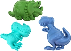 Four different dinosaur-shaped molds inspire kids to create scenes and figures from sand and spark their imagination.