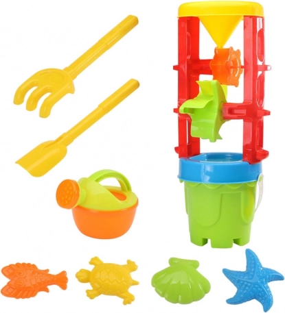 - Large sand mill, bucket, shovel, rake, watering can, 4 molds
