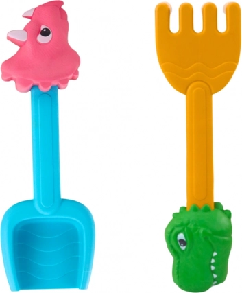 Dinosaur sand set: wheelbarrow, shovel, rake, watering can, and 6 molds