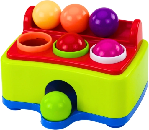 The interactive ball-pounding table is an ideal toy for preschoolers. Six colorful plastic balls are placed in the top openings and kids use the hammer to pound them inside. The balls then roll out through the front tunnel, creating surprise and encouraging repeat play.