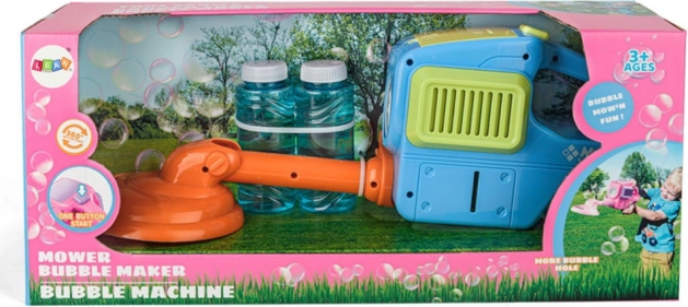 The operation of the mower is very easy, allowing children to play independently. The assembly of the bubble solution is intuitive – simply insert the feeding tube into the container with the solution. Pressing the button starts the mower releasing colorful bubbles, which brings lots of fun.