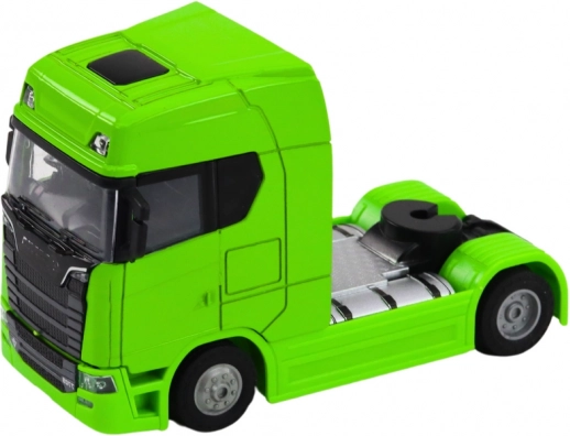 The truck is driven by a friction drive, meaning it moves forward on its own after being pulled back and released. This makes play more dynamic and entertaining. The model has rubber wheels for quality grip on different surfaces, ensuring quiet and smooth movement.