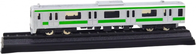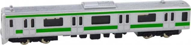 This 1:48 scale metal train car model impresses with precise craftsmanship, true-to-scale proportions, and a clean silver appearance with green accents. Carefully rendered windows, doors, and undercarriage emphasize the realistic look, making it stand out in a display case or on a desk.