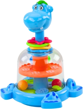 The interactive hippo delights with vibrant colors and simple operation. By pressing the head, the wheel in the tummy spins and 4 colorful balls start moving. Children watch the balls bounce and change direction, stimulating curiosity and focus.