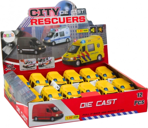 A realistic ambulance model in scale 1:32 is an ideal toy for children fascinated by rescue operations. This model provides a high level of detail and functional elements such as opening doors, light and sound effects, and a flywheel, ensuring exciting and interactive play.