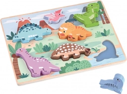 Discover a fun wooden dinosaur puzzle that will delight every child from 12 months. The colorful, smiling figures support fine motor skills, shape and color recognition, and logical thinking. Quality wooden workmanship and a comfortable piece size ensure safe and meaningful play.