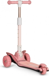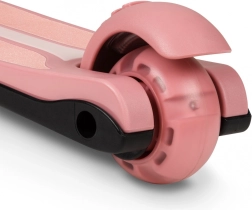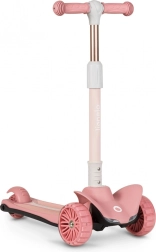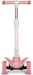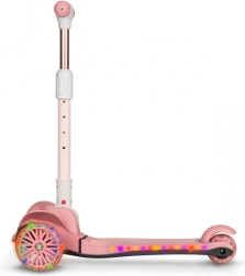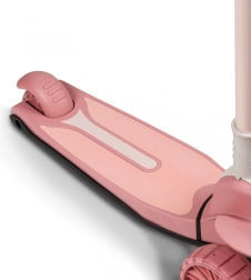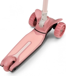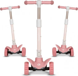 LIONELO Timmy Pink Rose is a lightweight and safe children's scooter designed for comfortable first rides. Two large front wheels and one rear ensure excellent stability, while lean-to-steer turning supports the development of balance and motor skills. LED lights in the wheels are activated by motion, and the LED deck lighting increases visibility and fun.