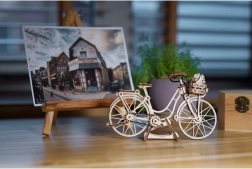 The Holland Bike by Ugears faithfully captures the iconic city bicycle from the streets of Amsterdam—with an elegant frame, a front basket, and a rear rack. The parts are laser pre-cut with precision and fit cleanly together, so you can assemble the model comfortably without glue in about 1.5 hours. Once finished, it delights with realistic functions: rotating handlebars, moving pedals with a rubber chain, and spinning wheels.