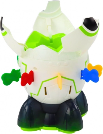 Insert sticks around the astronaut — the right hole triggers the surprise and the figure pops out of the rocket.