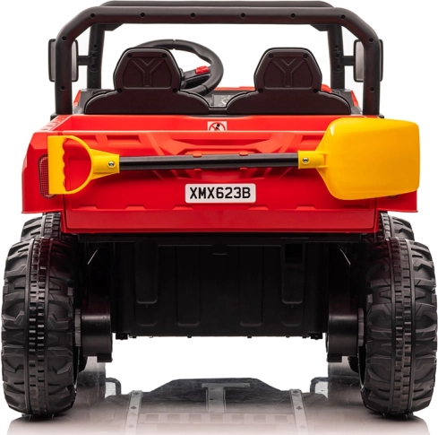 The Farmer Truck 24V is a spacious kids’ vehicle for two children, ready for grass and light off-road paths. The electric tipping bed makes it easy to transport leaves, toys, or a picnic basket, and the included shovel supports creative play. Comfort is ensured by an upholstered eco-leather bench, smooth, jerk-free starts, soft EVA wheels, and functional suspension.