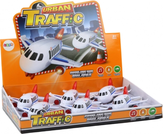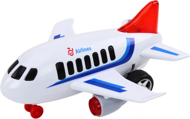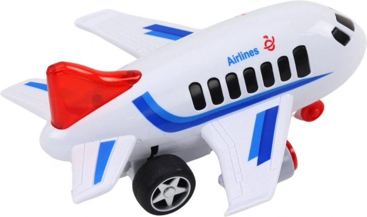 The airplane features light and sound effects that enhance playtime and add a touch of realism. By pressing the appropriate buttons, the model produces flashing lights and realistic sounds, such as engine noise and takeoff, intensifying the play experience and encouraging further exploration.