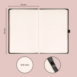 The dotted pages give you freedom for precise planning, drawing, and creating clear notes. The elastic band keeps everything together, the back pocket stores small items, and the loop ensures your pen is always at hand.