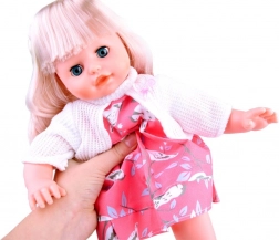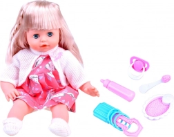 This doll with long blonde hair and a cute pink outfit has a soft body perfect for cuddling. When laid down, it closes its eyes, adding realism to play. With the included accessories, children develop fine motor skills, empathy, and imagination.