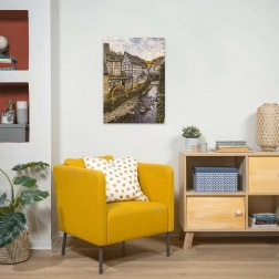 The finished image with a calm riverside scene becomes a stylish addition to a living room or study, bringing a pleasant atmosphere to the space.