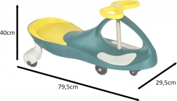 A stylish gravity-powered ride-on for kids delivers a smooth ride without pushing with the feet – movement is driven by turning the steering wheel. Thanks to LED light-up wheels, anti-slip footrests, and a stable build, the fun is safe both indoors and outdoors. Rubberized wheels protect floors from scratches, and the high load capacity up to 80 kg ensures long-lasting use.