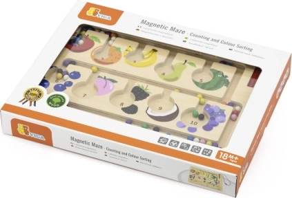 This high-quality wooden magnetic maze is a great educational toy for developing children’s dexterity. Using the magnetic pen, kids move colorful beads along marked paths, sort them by color, and match them to fruit images or numbers. The game supports logical thinking, concentration, and hand–eye coordination.