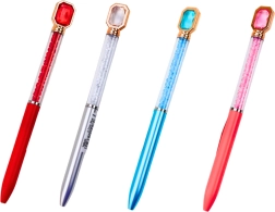 Elegant ballpoint pen with a transparent barrel filled with sparkling stones and a delicate crystal at the end. Blue ink ensures smooth, fluid writing, ideal for everyday use and as a gift. Available in a mix of barrel colors (pink, blue, red, silver).