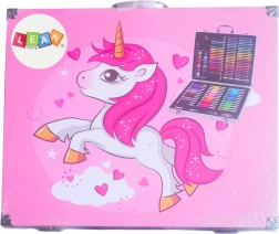 Discover the magic of creating with this creative set in a pink suitcase featuring a unicorn design. It includes 150 pieces for painting and drawing projects: colored pencils, wax crayons, watercolor paints, brushes, an eraser, and a sharpener. Ideal for children aged 3+ to develop imagination, fine motor skills, and artistic abilities. The compact suitcase with a handle makes carrying and storage easy.