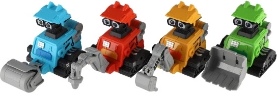 The robots are made of durable plastic and come in four attractive variants inspired by construction machinery. Compact dimensions of 8 × 10 × 14 cm fit little hands and encourage imagination and fine motor development.