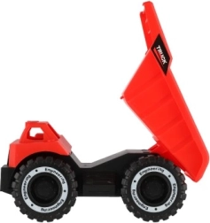Functional bucket, arm, and tipping bed support realistic play and fine motor skill development.
