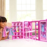 The BARBIE Dream Closet is ideal for young stylists. Two hanging rails and more than twenty storage spots provide plenty of room for dresses, shoes, handbags and jewelry. Lay out the outfits, fine-tune the accessories in the large mirror and sit at the folding vanity with a heart-shaped mirror — ready for the next fashion story.