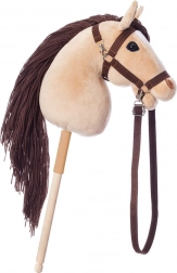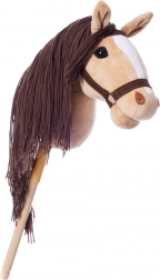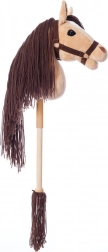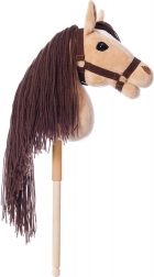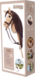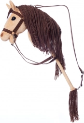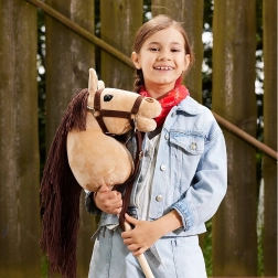 The Hobby Horse features a realistic design with a soft plush head and a wooden stick, allowing children to simulate riding a horse.
