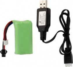 RC car, remote controller, rechargeable pack, 2× AA batteries, charging cable