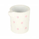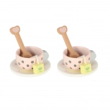 The wooden tea set features a charming pastel design with delicate polka dots that attract children's attention and encourage play.