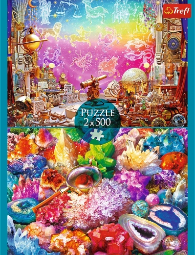 Enjoy hours of relaxation and focus with this set of 2×500-piece puzzles. Imaginative motifs — magical observatories and colorful crystals — will delight lovers of beautiful illustrations and avid puzzlers. Each finished image measures 48 × 34 cm, perfect for framing.