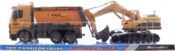 Enhance your children's creativity and playing abilities with this amazing construction set! It contains a sturdy plastic friction dump truck and an excavator, which together create the perfect team for a toy construction site.
