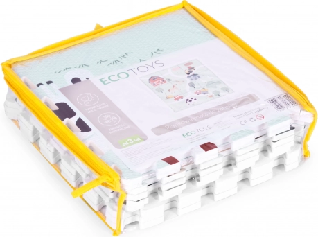 The cheerful farm theme with animals, a barn and paths supports imagination and sensory development. From 21 pieces you can assemble a stable play area, and thanks to the edge parts with "teeth" you can also build simple 3D shapes. EVA material is pleasant to the touch, non-slip and easy to clean — just wipe with a damp cloth.