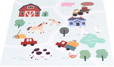 The farm scene with animals, a barn and paths draws children into creative play. Bright colors and rich details nurture imagination and sensory engagement.