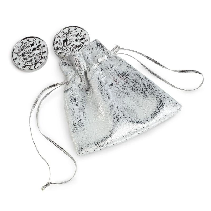 - Magical accessories: silver star wand and a shiny pouch with “silver coins.”