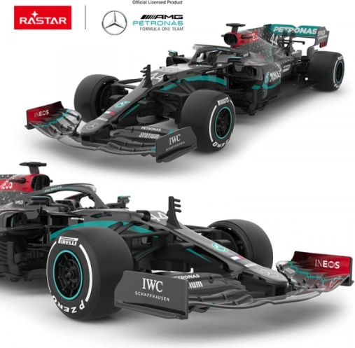 Enter the world of racing with the realistic Mercedes‑AMG F1 W11 EQ Performance model in 1:18 scale by RASTAR. This remote-controlled car offers full control (forward, backward, left, right), faithful details, and is perfect for kids from 6 years, teenagers, and F1 fans. With a length of 32 cm, it’s ideal for driving as well as a collector’s model.