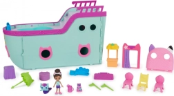 Get ready for amazing adventures in the dollhouse and pretend sea voyages with the Boat set. This exciting toy from DreamWorks Gabby’s Dollhouse includes over 18 pieces, including a Gabby doll and a Mermaid figure, plus lots of accessories and dollhouse furniture. A must-have for fans of the series who love creating their own adventures. Start the day by taking Gabby and Mermaidcot for a quick swim in the pool. Then sit under the sun umbrella at the cocktail bar for a quick snack. After fun in the sun, open the doors of the excursion boat and head below deck for a stylish dinner with the Mermaid under the chandelier. After dinner, flip the dessert buffet to reveal a DJ station, then turn the chandelier to transform it into a disco ball and kick off an incredible dance party. Place Gabby on the dance floor and spin her using the thumb wheel. Head to the photo booth and use the photo props before you start pretending to take pictures. After a day full of pretend cruises and parties, dock the excursion boat next to Gabby’s dollhouse or another dollhouse set using the ramp (dollhouse and sets sold separately). Then, just like Gabby at the start of every episode, unbox the special Cat Package and discover a surprise toy—the mermaid’s captain’s hat. To discover the final surprise, scan the QR code inside your Cat Package and unlock a special prize in the free Gabby’s Dollhouse app (available for iOS and Android). For even more play possibilities, combine all the dollhouse rooms—such as the Narwalker Carnival room—with the excursion boat doors to further expand the world of Gabby’s Dollhouse (rooms sold separately). Gabby’s Dollhouse plush toys, dolls, figures, and playsets are ideal toys for girls and boys who love using their imagination to create their own dollhouse world, so get ready for endless adventures with the friendship boat from Gabby’s Dollhouse.