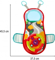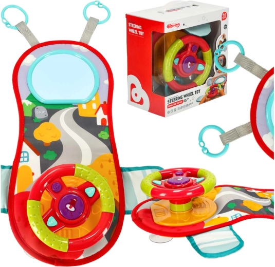 Let your child experience the joy of driving! The interactive steering wheel with a vibrant mat and a safe mirror offers a horn, turn signals, and sound buttons that faithfully imitate driving a car. Thanks to smart mounts, you can easily attach it to a stroller, car seat, or place it on a table.