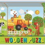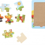 Discover a cute wooden puzzle with a harvest theme, ideal for the little ones. The pieces are placed on a sturdy base board with a milled edge for easy assembling. Supports fine motor skills, develops imagination, and brings children the joy of first successes.
