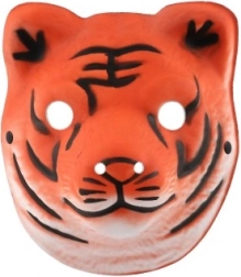 An orange tiger mask with bold black stripes, perfect for all young animal lovers.