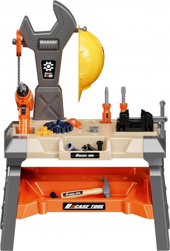 - Rich equipment: workbench, vise, helmet, saw, 2 screwdrivers, hammer, wrench, pliers, 2 spanners, safety goggles, stool, gears, screws, nuts, wall plugs, and wooden strips.