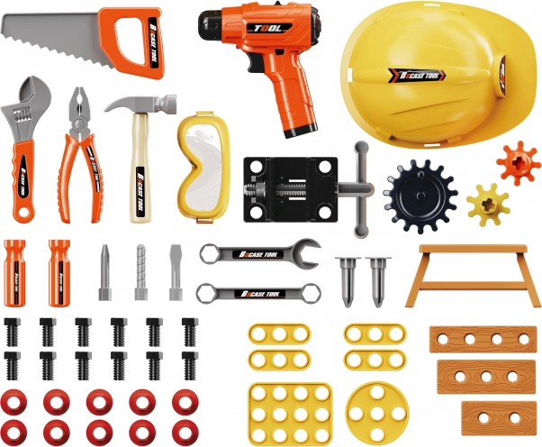The set supports the development of fine motor skills, logical thinking, and hand–eye coordination. With a wide range of tools, kids can try various activities from screwing to sawing and building.
