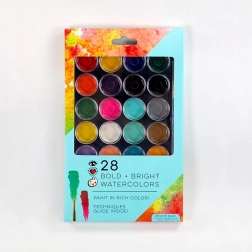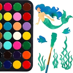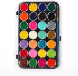 Discover endless possibilities for playing with color and create your own original paintings. This practical, compact set of 28 watercolor paints in beautiful, vibrant shades lets everyone express their creativity. The set is enclosed in a plastic case that protects the paints from drying out and makes everyday use easier. Included are a brush and a brief guide to watercolor techniques, helping anyone learn to combine colors and create new shades. It’s an ideal gift for children, friends, and anyone who loves to paint.