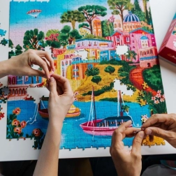 The TREFL Premium Plus puzzle from the The Art of Colour series delivers a unique visual experience with a motif of the picturesque island of Syros, Greece. High-quality board and precision die-cutting ensure that pieces fit only where they belong, and the increased thickness lets you move assembled sections easily without the risk of them falling apart.