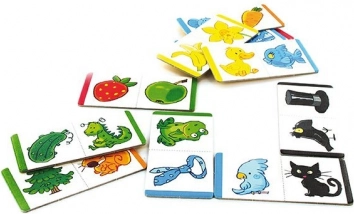 Picture dominoes with colorful motifs (e.g., a yellow duckling, a blue fish) is an ideal “first game” for the youngest players. While matching tiles, children practice color recognition, naming animals, and at the same time train motor skills and concentration in a gentle, playful way. Thanks to the thick cardboard, the game is durable and suitable for everyday play.