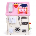 Discover a richly equipped activity board house that combines play and learning in one. Thanks to a variety of mechanical elements—locks, buckles, laces, wheels, and switches—children refine fine motor skills and logical thinking while nurturing creativity and curiosity.